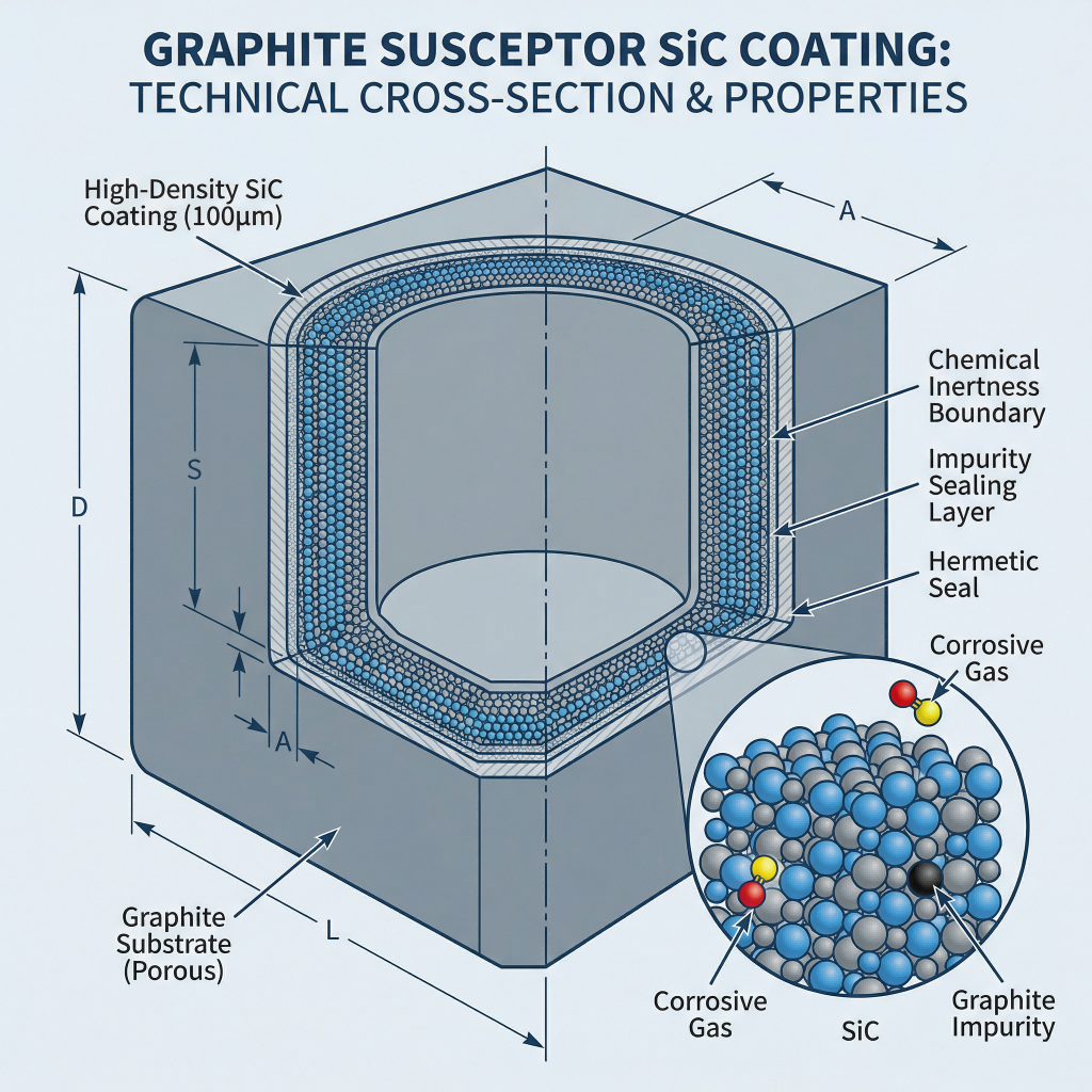 In MOCVD processibus vel epitaxialibus, graphitae susceptores typice altum operandi tunicas requirunt. Exempli gratia, densitas Carbide Siliconis (SiC) efficiens directe determinat facultatem suam immunditiam signandi intra subiectum.