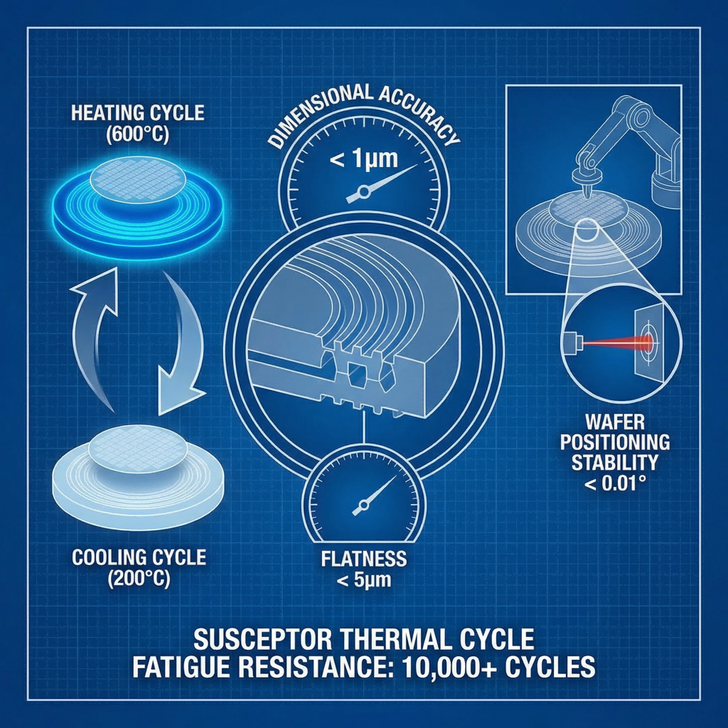 Magnum susceptores debent possidere optimum resistentiam ad lassitudinem cycli scelerisque. In diuturnis cyclis calefactionis et refrigerationis, susceptor accurationem dimensionalem et planitiam servare debet ne laganum positionis deviationes per di0stortionem mechanicam causatam, ita ut cedat omnis massae in expectato baseline remaneat. Premium susceptores optimam resistentiam cycli lassitudinem habere debent. In diuturnis cyclis calefactionis et refrigerationis, susceptor accurationem dimensionalem et planitiam servare debet ne laganum positionum deviationes per distortionem mechanicam causatam, ita ut cedat omnis massae in expectata baseline remanere.