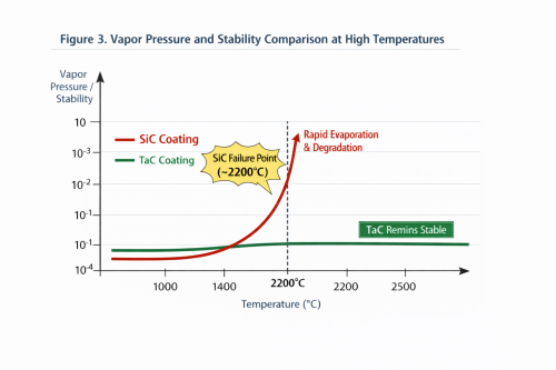 Thermodynamica Stabilitas singularis: Tantalum Carbide (TaC) punctum vacillans liquescens 3880°C. Secundum investigationem in Acta Crystal Incretionis, SiC tunicae "incongruam evaporationem" subeunt supra MMCC°C, ubi silicon citius sublimat carbo, ducens ad deformitatem structuram et particulam contaminationem. E contra, vapor pressurae Tactus est 3 ad 4ordines magnitudinis inferiores quam SiC, campum scelerisque pristinum pro crystalli incremento servans.
