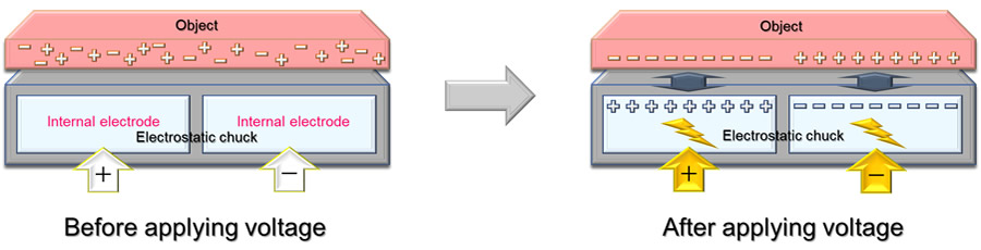 Et electrostatic Chuck (Esc), etiam notum est quod electrostatic Chuck (ESC, E-Chuck), est a fixture quod utitur principium electrostatic adsorption ad teneat et fix ad adsorbed material. Est idoneam in vacuo et Plasma environments. Et principalis munus est adsorb Ultra-Tersus tenuis laminas (ut Silicon wafers) et custodiunt ad adsorbed materiam ad bonum planities, quod potest etiam inhibere deformatio ad adsorbed materialis per processus et potest adjust ad temperatus ad adsorbate.
